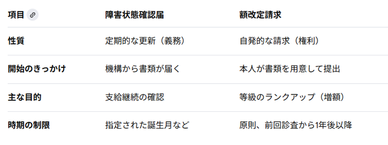 【障害状態確認届と額改定請求の違い】